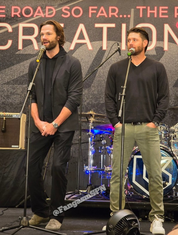 Говорили о том, было ли желание бросить карьеру актёра: Джаред сослался на то, как приходилось уезжать из Остина и оставлять детей, а они плакали, и как ему бывало тяжело на сердце от этого, Дженсен же сказал, что 19ти-летним едва не уехал домой, когда отменили Мистера Родса, но тут его утвердили в ДНЖ. Говорили о съёмках любовных сцен, о самых нелюбимых сценах/эпизодах СПН, о том, как Джаред настраивался на роль Люцифера. Говорили что-то о костюмах - Джаред выбрал костюм белки, Дженсену припомнили шорты тренерские (он сказал, что такие шорты уже не шили, так что ему нашли эту ткань и специально сшили эти чёртовы шорты). Вспоминали, как их закапывали для съёмок - я не поняла для какой сцены и в чём закапывали Джареда, но он вспоминал подробно съёмки, как учился задерживать дыханье, Дженсен говорил о Воскрешение Лазаря и как ещё неделю вытряхивал из ушей крошки орео.