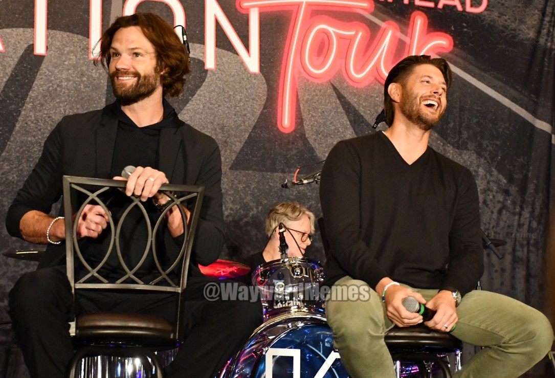 Говорили о травмах на съёмках (от рук Джареда в СПН, до связок на Уокере), о локте Дженсена на съёмках сцены с вратами в Ад. О том, что они не используют никакой защиты на трюках.